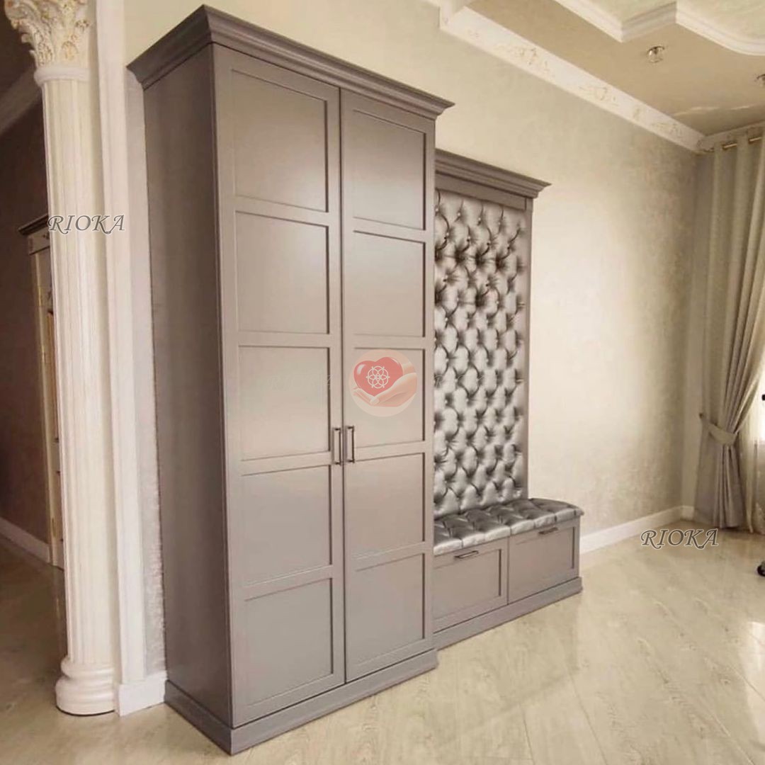 Прихожая «Женевьева»-хорошее решение для маленькой комнаты. Все разделы продуманы и сгруппированы по назначению:удобный шкаф, открытая вешалка с полочкой для шляп, закрытый шкаф для обуви.Предмет мебели отлично впишется в любой современный интерьер.
